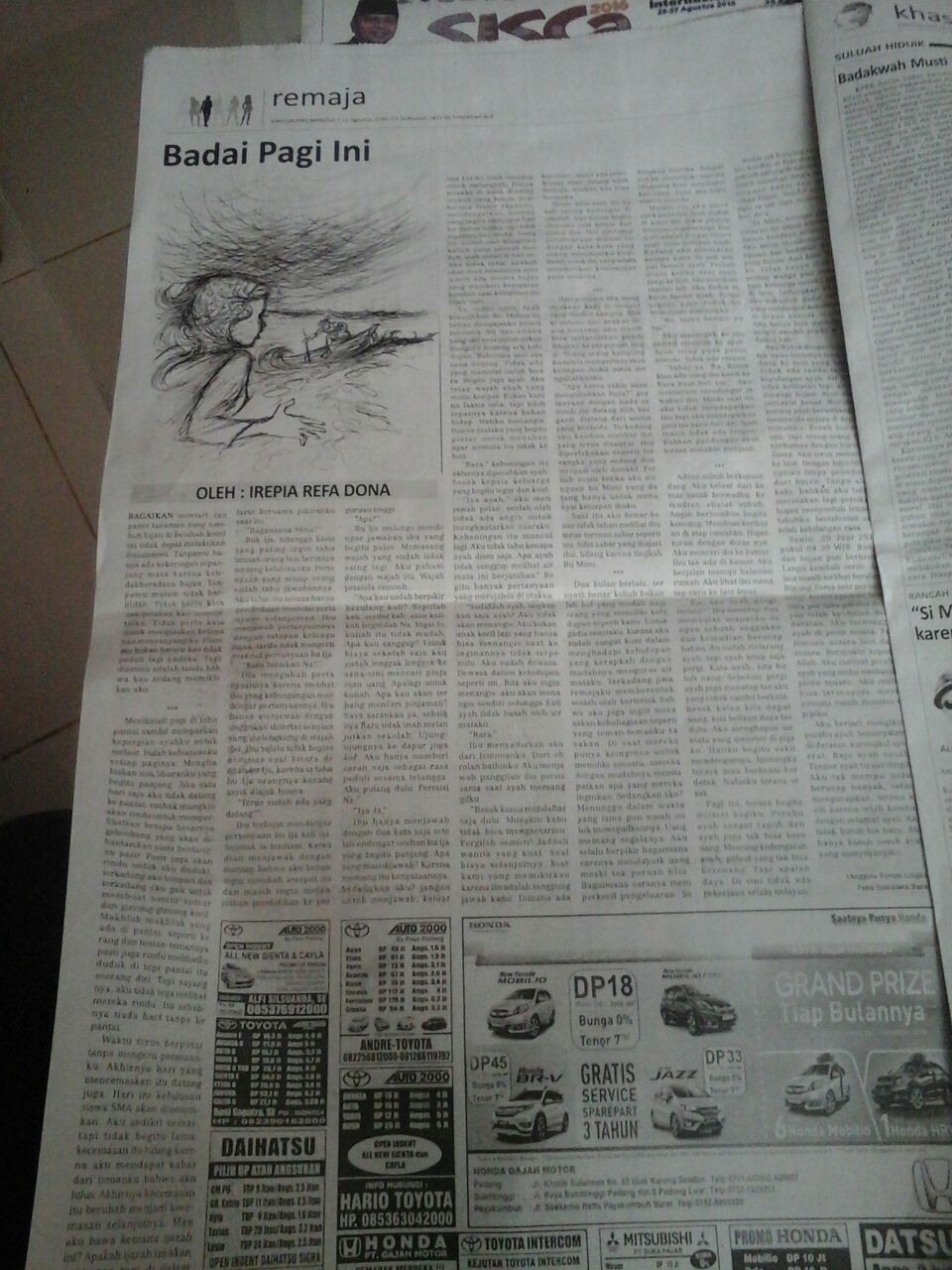 Cerpen Remaja Badai di Hati Tara Dimuat di Koran Minggu Pagi - Reyhan M Abdurrohman