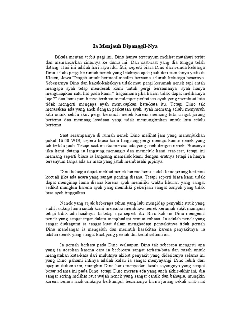 Cerpen - Ia Menjauh Dipanggil-Nya