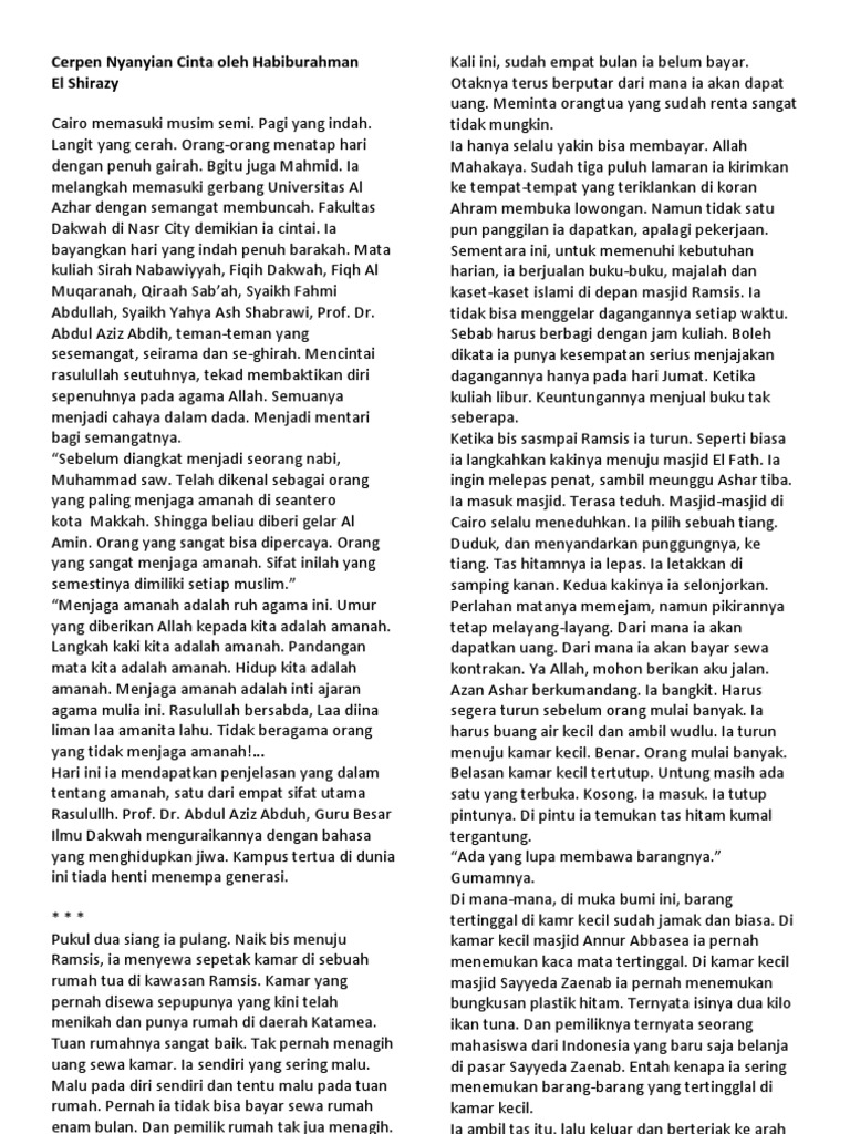Cerpen Islami Habiburrahman El Shirazy
