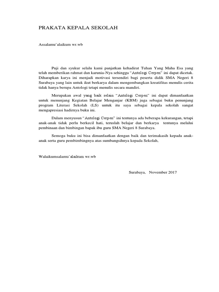 PRAKATA KEPALA SEKOLAH