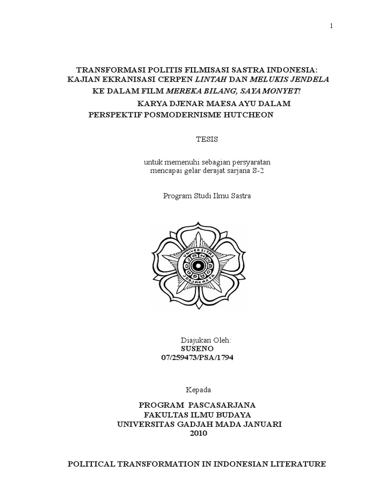 Transformasi Politis Filmisasi Sastra Indonesia: Kajian Ekranisasi Cerpen Lintah dan Melukis Jendela ke dalam Film Mereka Bilang, Saya Monyet! Karya Djenar Maesa Ayu dalam Perspektif Posmodernisme Hutcheon*) | Cogito Ergo Sum