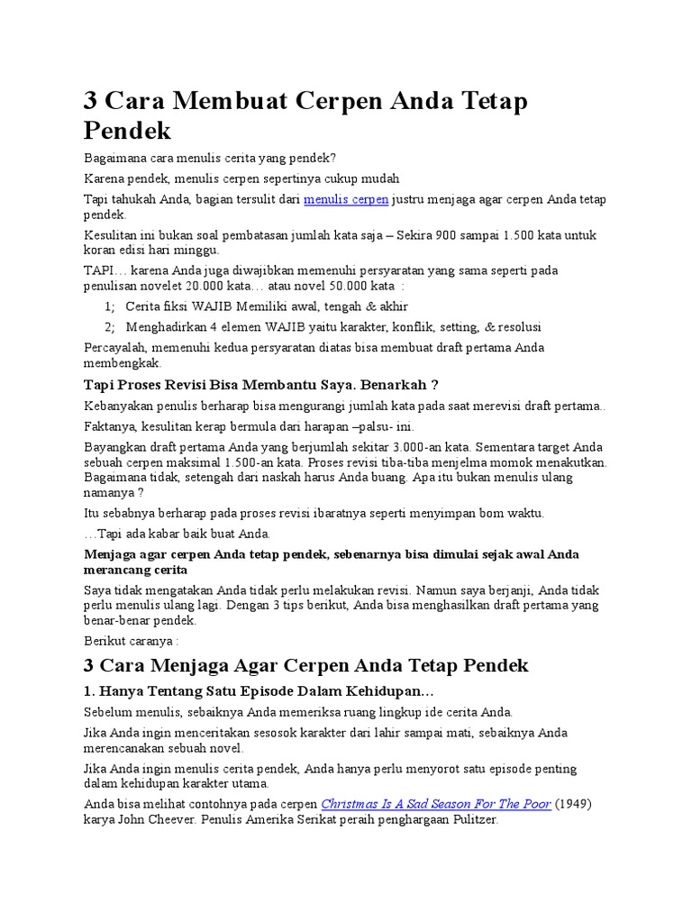 3 Cara Membuat Cerpen Anda Tetap Pendek