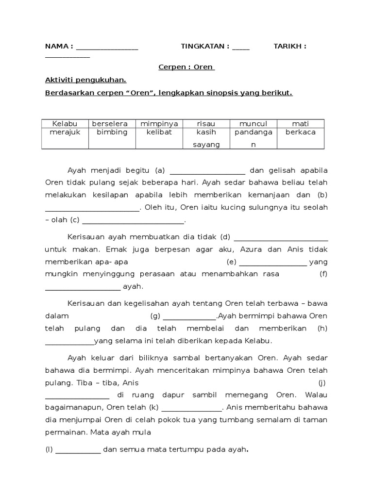 Cerpen Oren (K2): Sinopsis, Tema, Persoalan, Plot, Watak, Latar, Nilai, Pengajaran … - Bumi Gemilang