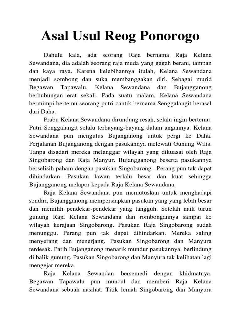 Reog Ponorogo, Cerita Rakyat Jawa Timur - Kumpulan Dongeng, Cerpen, Legenda, Kisah, Cerita Rakyat, Puisi, Makalah, Tips, dll