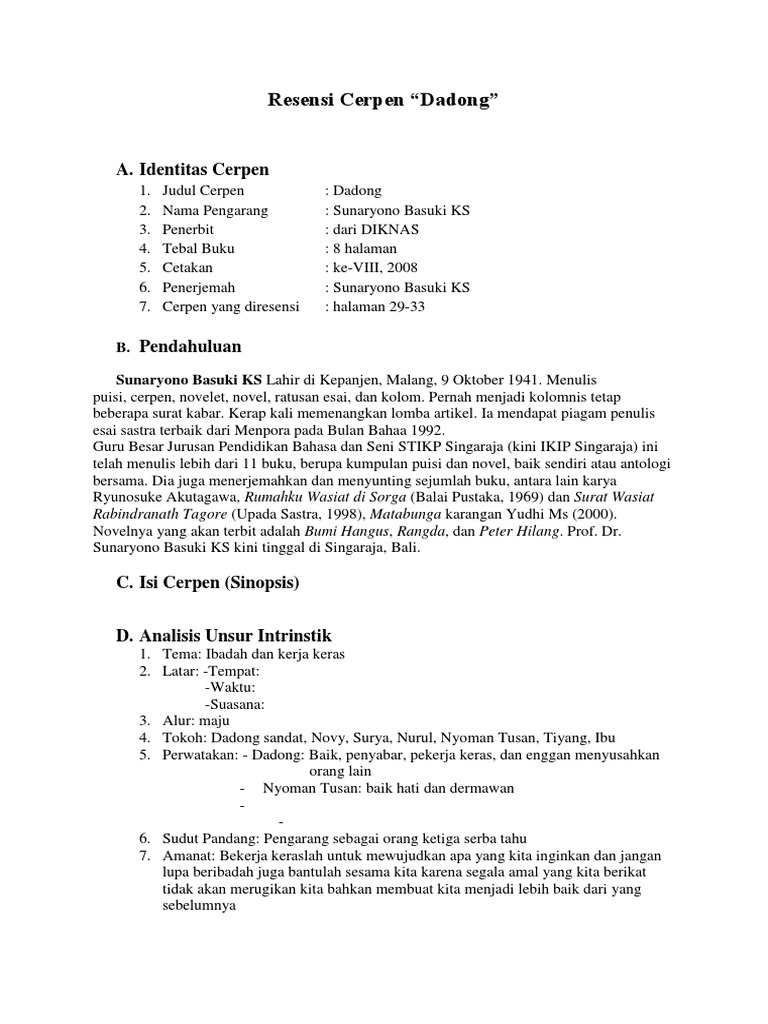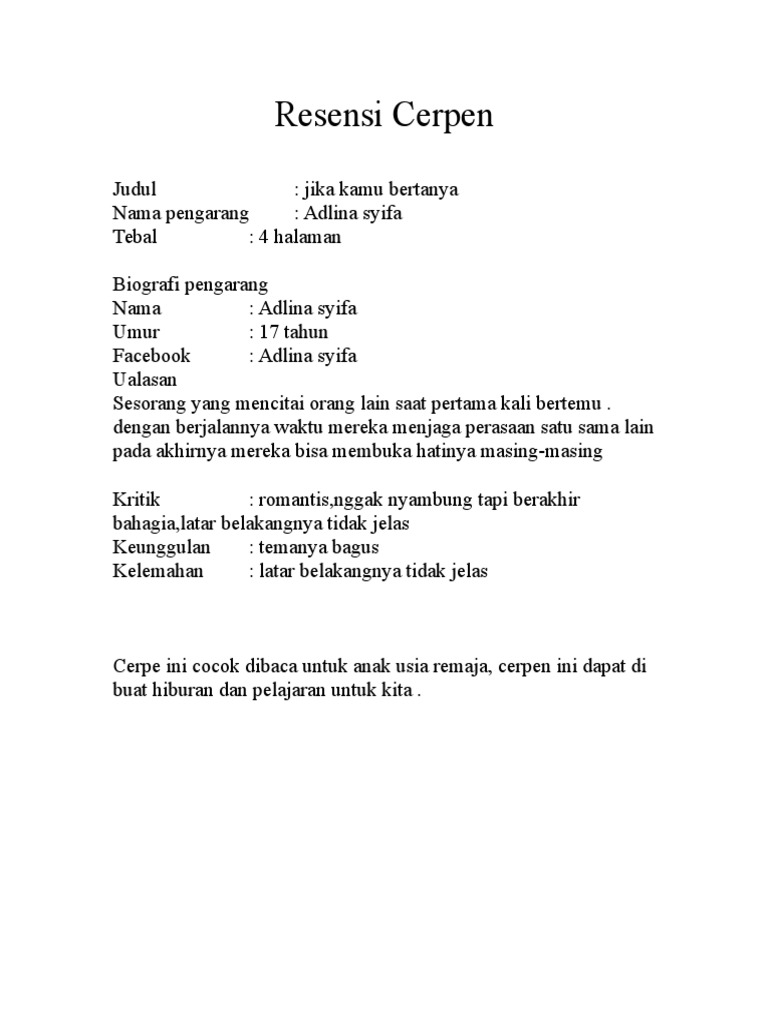 DOC) CONTOH RESENSI CERPEN | Wachyou Ramadhan - Academia.edu