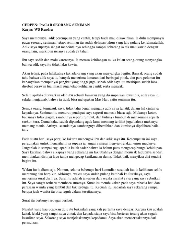 Cerpen: Pacar Seorang Seniman Karya: WS Rendra