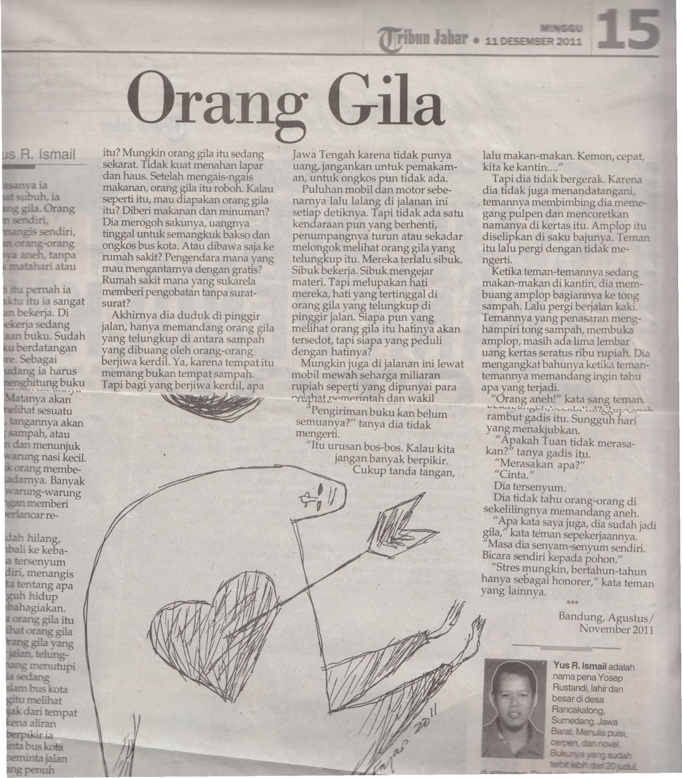 Cerpen Tribun Jabar: ORANG GILA - Dongeng YusR.Ismail