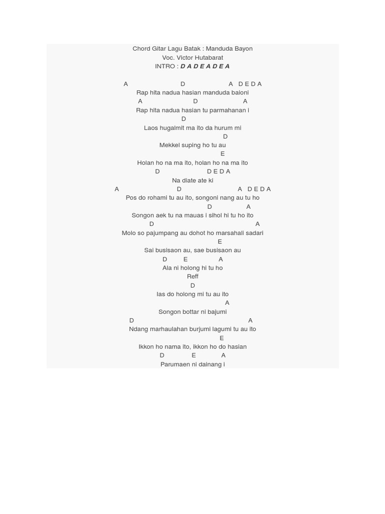 Chord Gitar Lagu Batak Mandudu Bayon