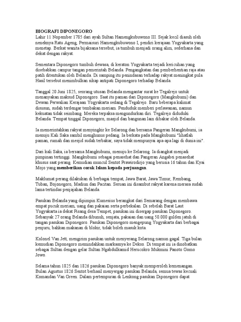 DOC) Biografi Pangeran Diponegoro | arya syafin - Academia.edu