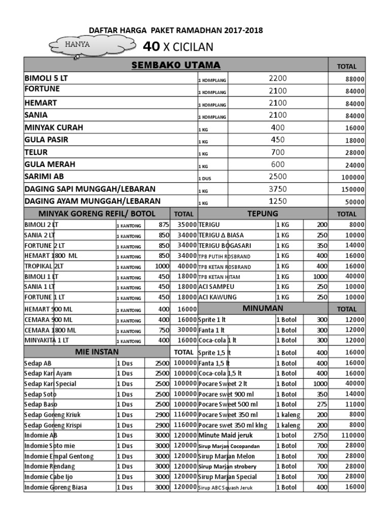 Contoh Daftar Paket Sembako Lebaran