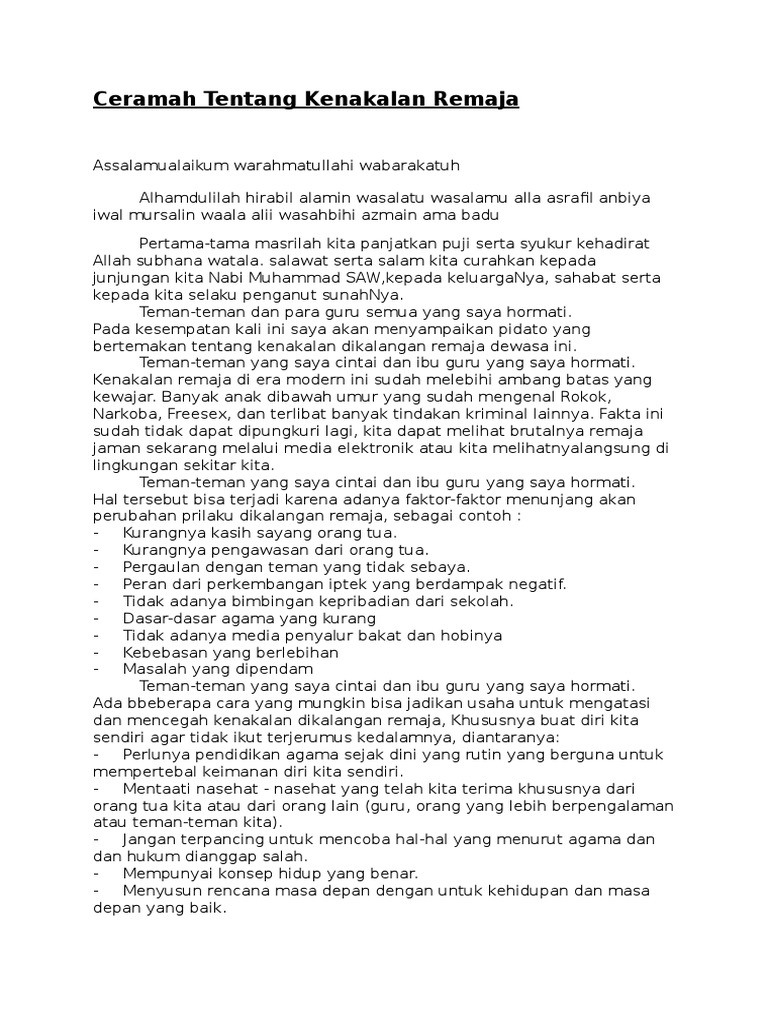DOC) Contoh Pidato Singkat Tentang Kenakalan Remaja | Hadi Tomi - Academia.edu