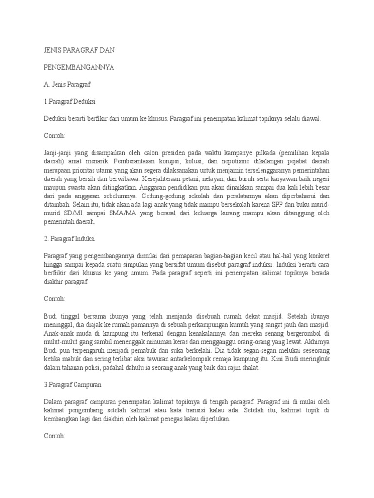 DOC) KUMPULAN CONTOH PARAGRAF DEDUKTIF, INDUKTIF DAN CAMPURAN | Sahrul Parawie - Academia.edu