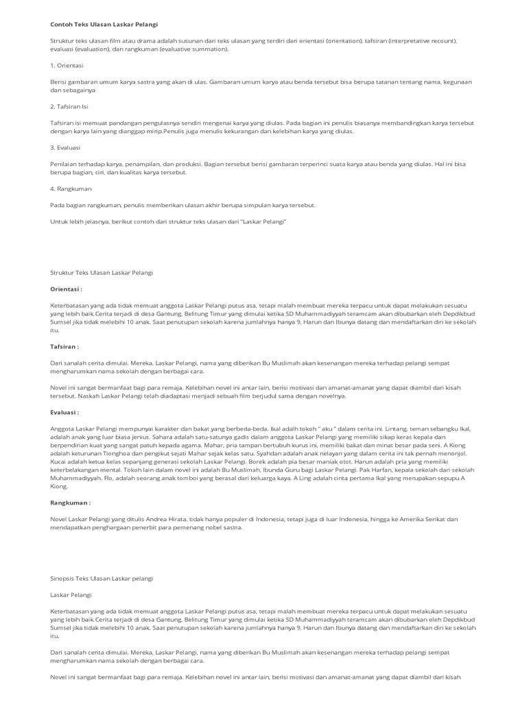 Struktur Teks Ulasan Laskar Pelangi Brainly - Berbagai Struktur