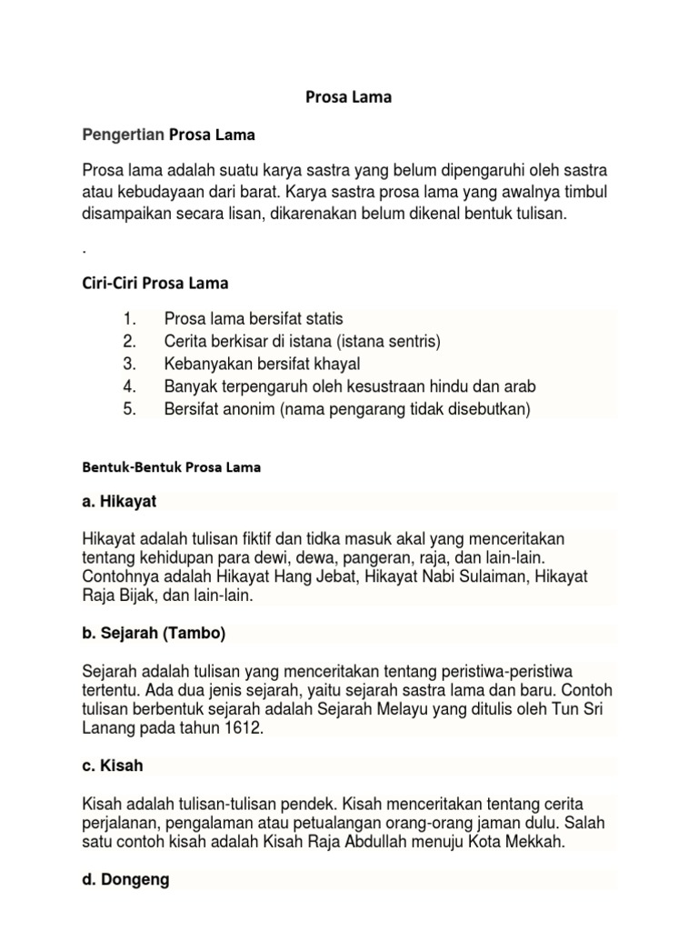 DOC) Pengertian Prosa Lama | Noor Dien - Academia.edu