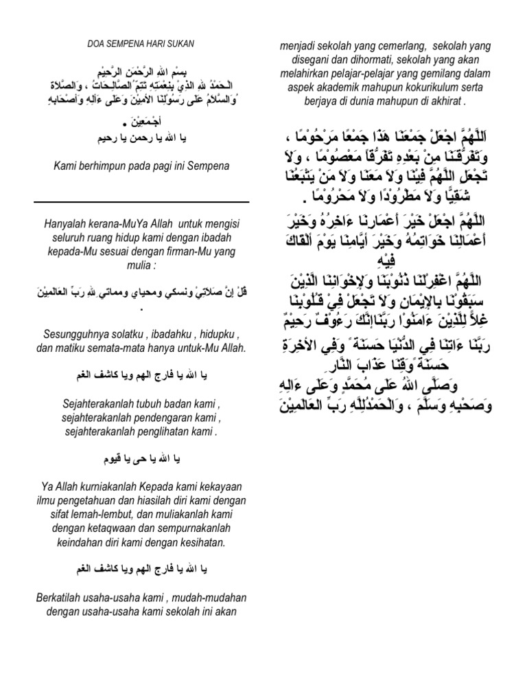 Teks Doa Pembuka Majlis Sukan