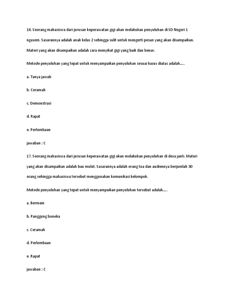 DOC) Contoh Soal Ilmu Kesehatan Masyarakat Untuk kelas X Kesehatan | alif huda - Academia.edu