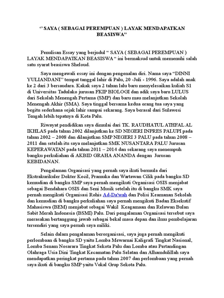 Essay tentang diri sendiri untuk beasiswa