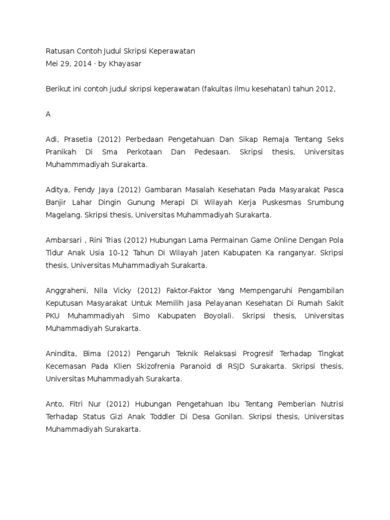 51870465 Contoh Judul Skripsi Keperawatan Dan Non Keperawatan - [DOCX Document]