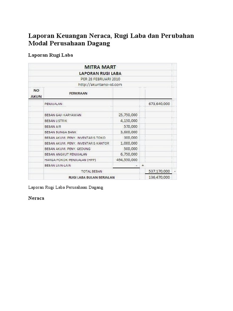 Laporan Keuangan Laba Rugi Perubahan Modal Dan Neraca - Seputar Laporan