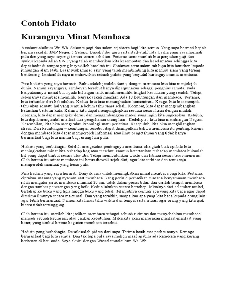 Contoh Pidato Gemar Membaca | Contoh Soal Dan Materi Pelajaran 5