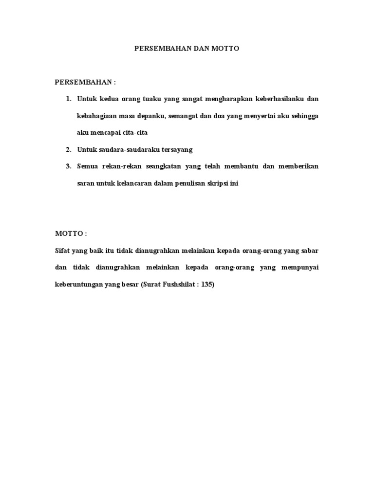 Globespotes Contoh Lembar Motto Dan Persembahan - Cute766