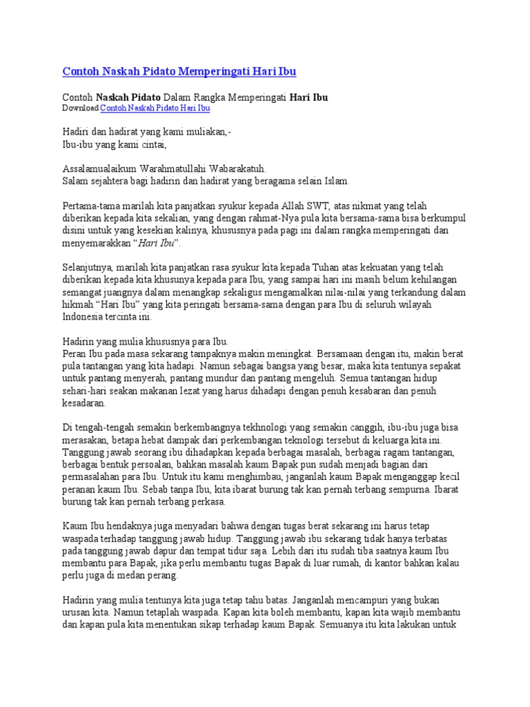 DOC) Contoh Naskah Pidato Memperingati Hari Ibu | Wahyu Widodo …
