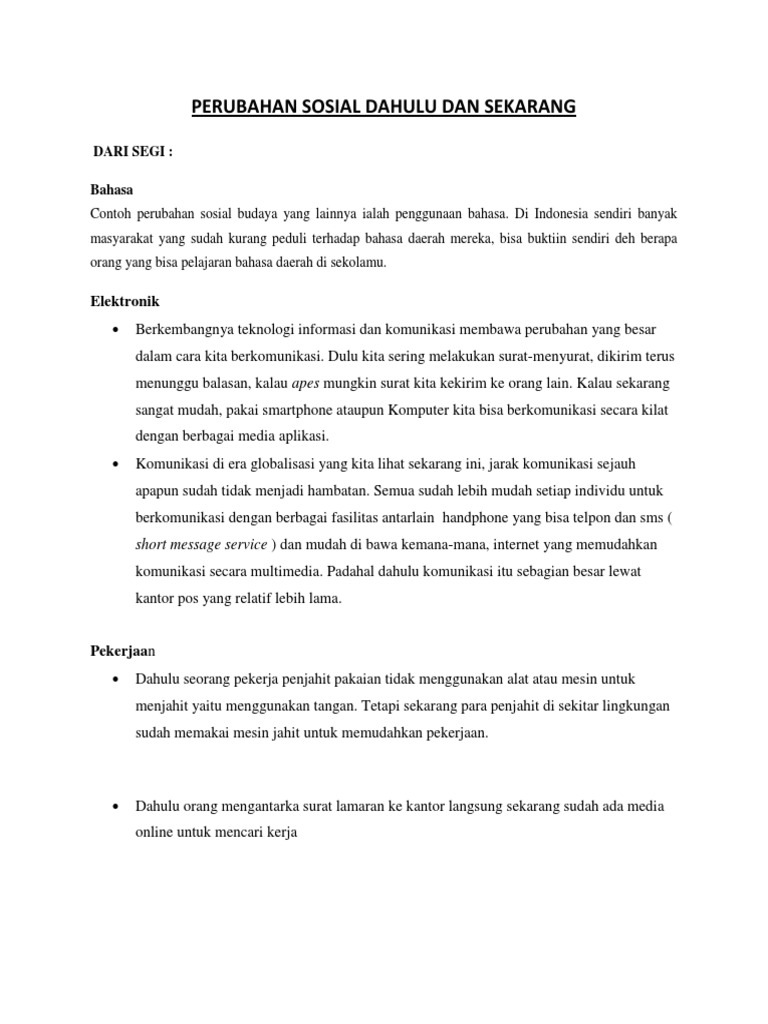 Perubahan Sosial Dahulu Dan Sekarang