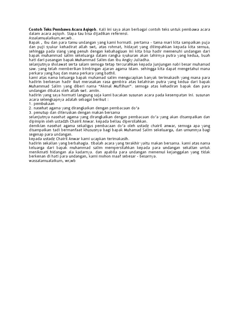Contoh Teks Pembawa Acara Aqiqoh