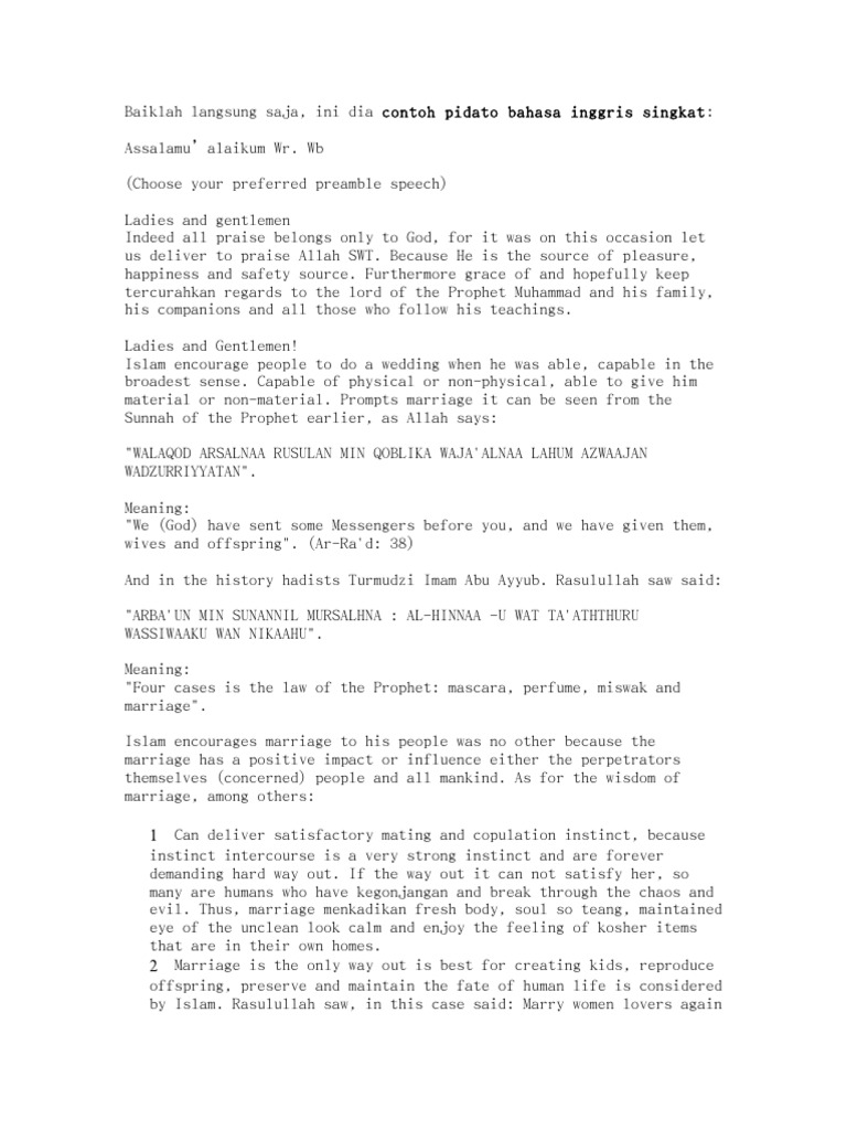 contoh soal shu: Contoh Pidato Islami 3 Bahasa