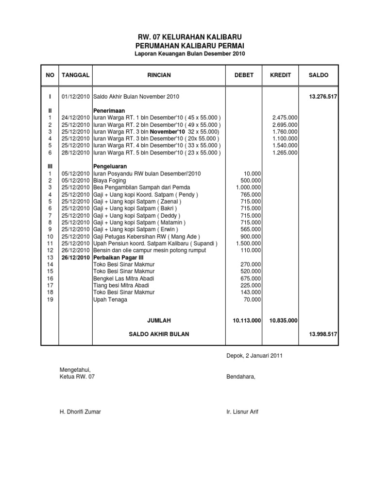 Laporan Keuangan RW Desember 2010