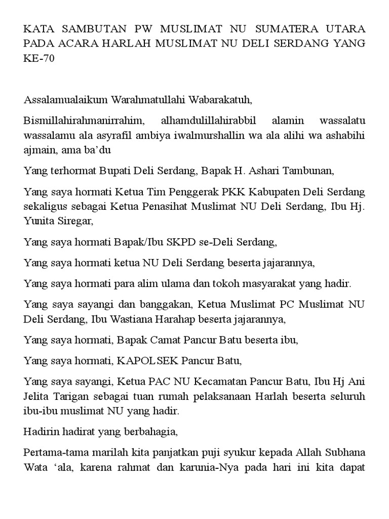 Kata Sambutan Pw Muslimat Nu Sumatera Utara Pada Acara Harlah …