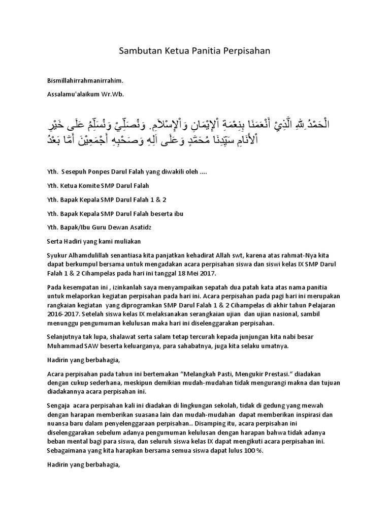 DOC) Contoh Pidato atau Sambutan Perpisahan MTs/SMP | Gembel Pulsa - Academia.edu