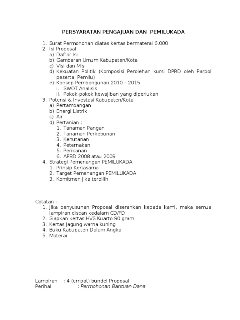 Proposal tawaran kerjasama strategi memenangkan pilkada gubernur, bup…