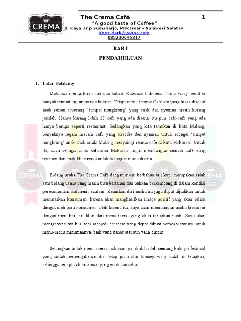 Contoh Proposal Bisnis Plan Cafe Pdf - Berbagi Contoh Proposal