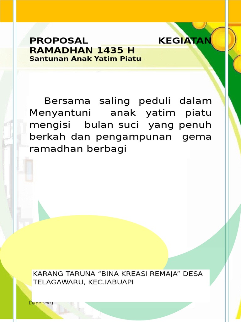 PDF) PROPOSAL SANTUNAN ANAK YATIM KARANG TARUNA RT 15 | tiara rizky - Academia.edu
