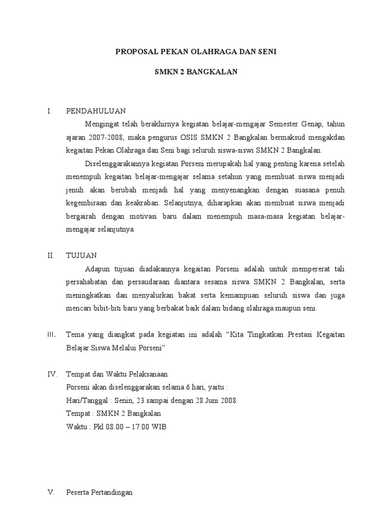 Proposal Pekan Olahraga Dan Seni