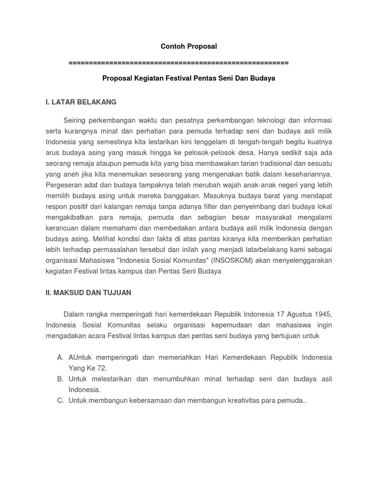 Contoh Proposal Kegiatan Festival Pentas Seni Dan Budaya - Temukan Contoh