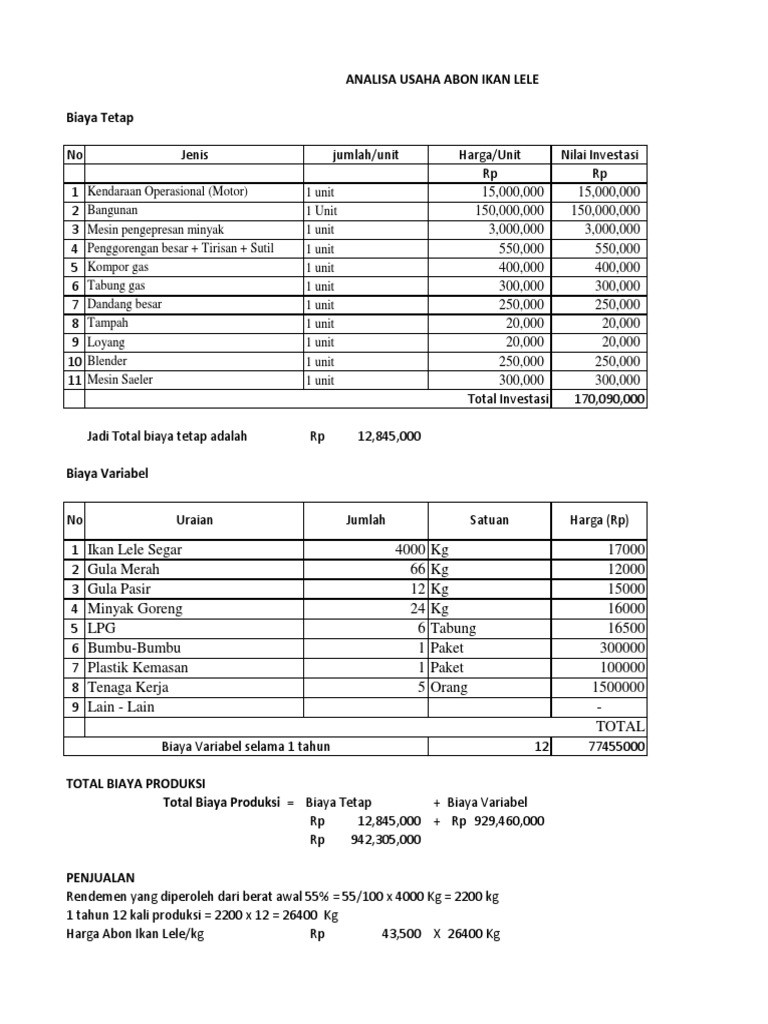 PROPOSAL RENCANA USAHA MAKANAN OLAHAN ABON LELE PA ULIS - PDF Download Gratis