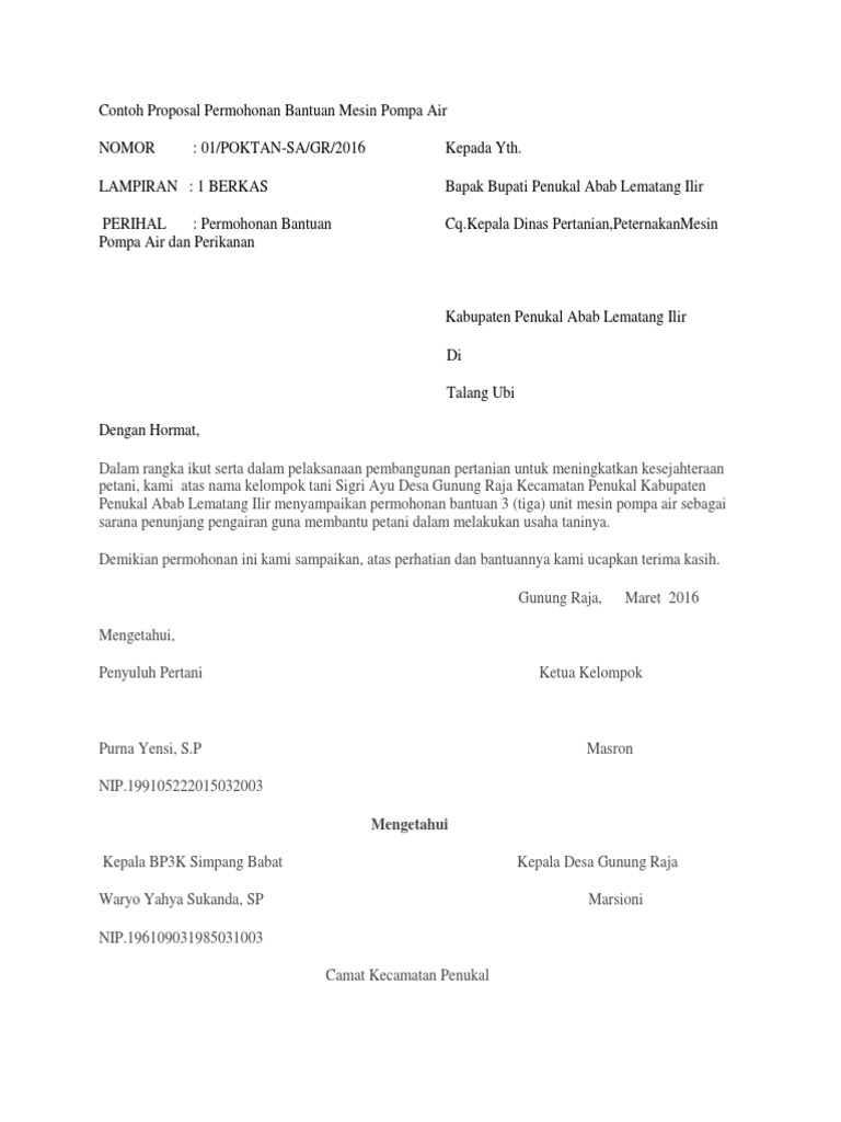 Contoh Proposal Permohonan Bantuan Mesin Pompa Air | Dunia Penyuluh Pertanian
