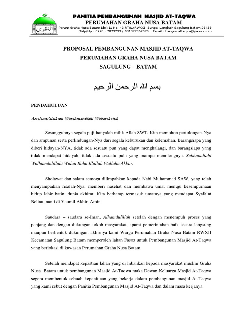 Contoh proposal pembangunan masjid