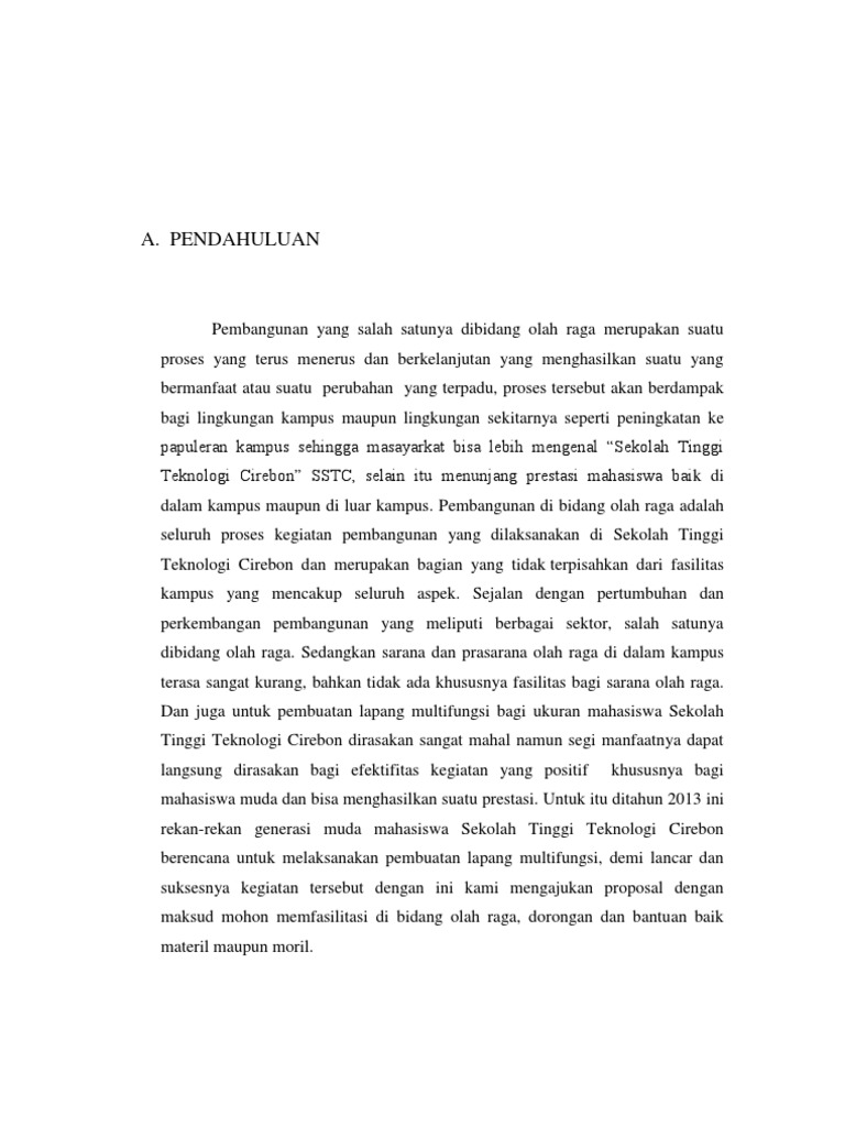 Contoh Proposal Pembangunan Tempat Olahraga. Bahan Belajar Organisasi