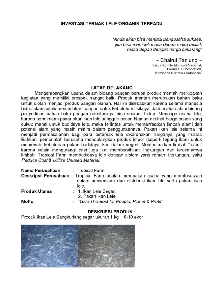 Proposal Penawaran Investasi Ternak Lele Organik Rian