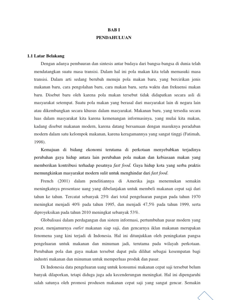 Contoh Proposal Penelitian Makanan Cepat Saji