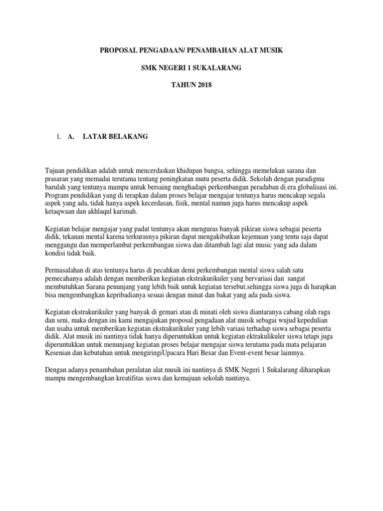 Contoh Proposal Permohonan Bantuan Alat Musik - Berbagi Contoh Proposal