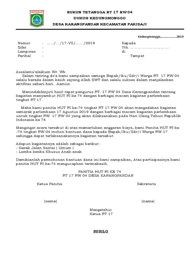Contoh Surat Permohonan Bantuan Dana dan Proposal Kegiatan HUT RI | Surat, Proposal, Tesis