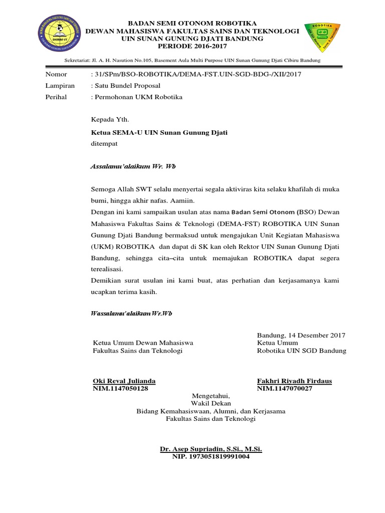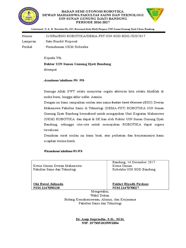 Contoh Surat Permohonan SK Pendirian UKM Kepada Universitas