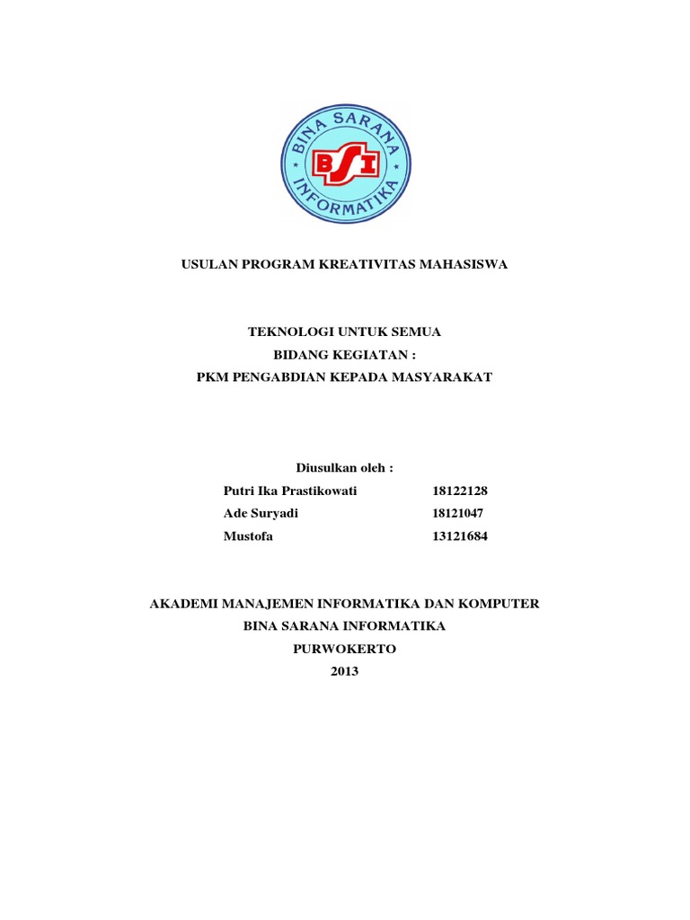 DOC) PROPOSAL PROGRAM KREATIVITAS MAHASISWA <…JUDUL PROGRAM…> BIDANG KEGIATAN: PKM PENGABDIAN KEPADA MASYARAKAT | firman syah, Tiara D T, and Riska Nur Fidiastuti - Academia.edu