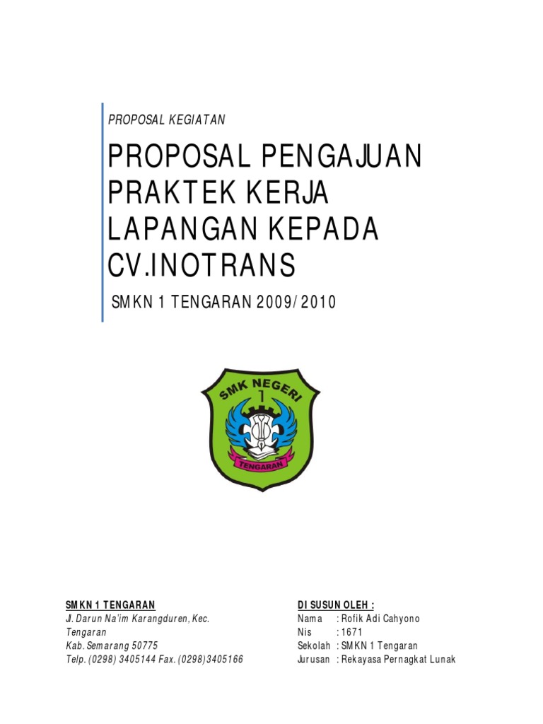 PROPOSAL PELAKSANAAN PRAKTEK KERJA INDUSTRI (PRAKERIN) TAHAP I SEKOLAH MENENGAH KEJURUAN | Asep Yudi - Academia.edu