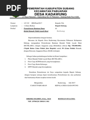 DOC) PROPOSAL PERMOHONAN BANTUAN RUMAH TIDAK LAYAK HUNI (RUTILAHU | Panwaslu Sukaresmi - Academia.edu