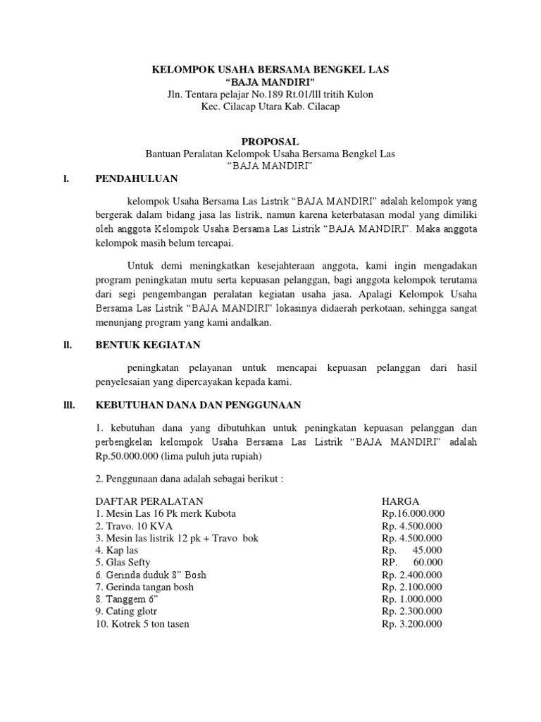 Contoh Proposal Permohonan Bantuan Dana Usaha Bengkel Las - Temukan Contoh